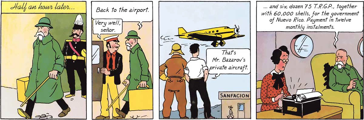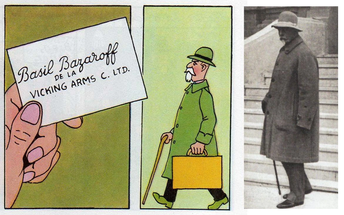 And the fiction writers saw it too. Eric Ambler modeled the sinister Dimitrios on Zaharoff in A Coffin for Dimitrios. George Bernard Shaw transmuted him into Andrew Undershaft in Major Barbara. Hergé put him in Tintin as the arms dealer Basil Bazaroff in The Broken Ear. He appears in Thomas Pynchon's Against the Day and Ezra Pound's Cantos (as "Metevsky"). Even the James Bond villain Ernst Stavro Blofeld — the bald mastermind of SPECTRE — is believed to owe his lineage to the Mystery Man of Europe.